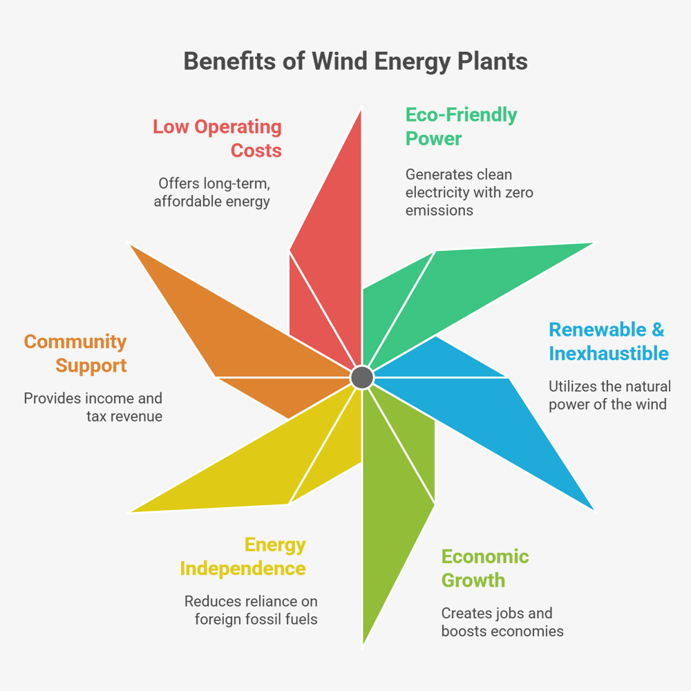 Wind energy plants are a powerful solution for a sustainable world. They generate clean, emission-free electricity, directly fighting climate change and improving air quality. Economically, they create local jobs and provide a steady income for communities. By tapping into the natural power of the wind, we build a more secure and independent energy future, powered by an endless, renewable resource.
